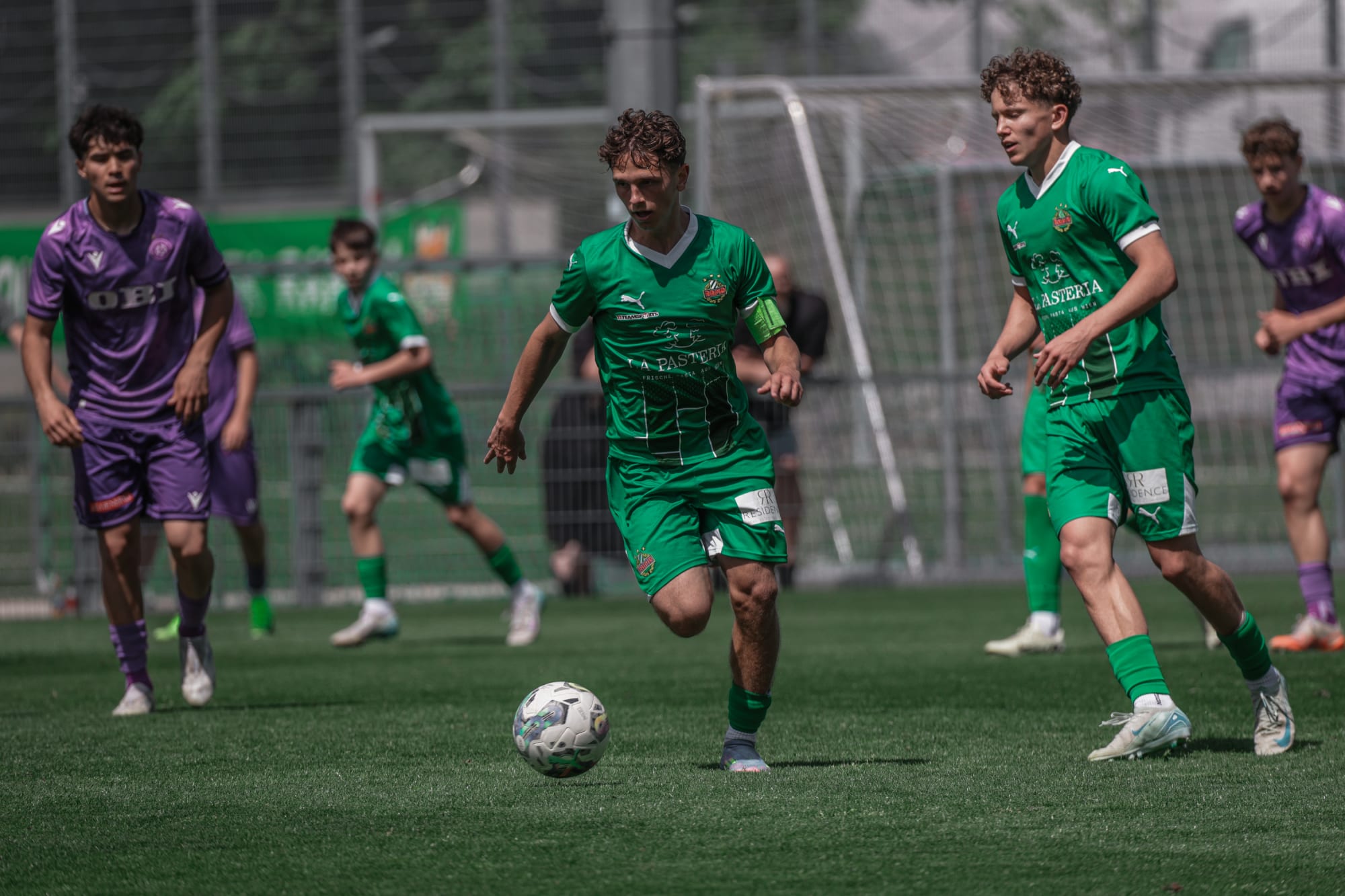 Die Forster-Elf konnte das U18-Derby vergangenen Samstag leider nicht für sich entscheiden. In Hälfte eins war man zwar über weite Strecken das bessere Team und kam vor allem durch Marcel Stöhr sowie Kenny Nzogang zu guten Torchancen (7., 29.), kassierte aber nach einer halben Stunde entgegen dem Spielverlauf das 0:1 aus einem Distanzschuss, der genau ins rechte untere Eck fiel (31.). Schlussmann Manuel Fellner war machtlos. Danach drückten die Grün-Weißen auf den Ausgleich und kamen durch Yasin Mankan und Emirhan Altundag zu gefährlichen Möglichkeiten (35., 39.). Letzterer zog per Drop-Kick aus rund 25 Metern ab und verfehlte das linke Kreuzeck nur um Haaresbreite. Kurz vor dem Pausenpfiff zeichnete sich Fellner aus und parierte einen Abschluss der Gäste stark (44.).