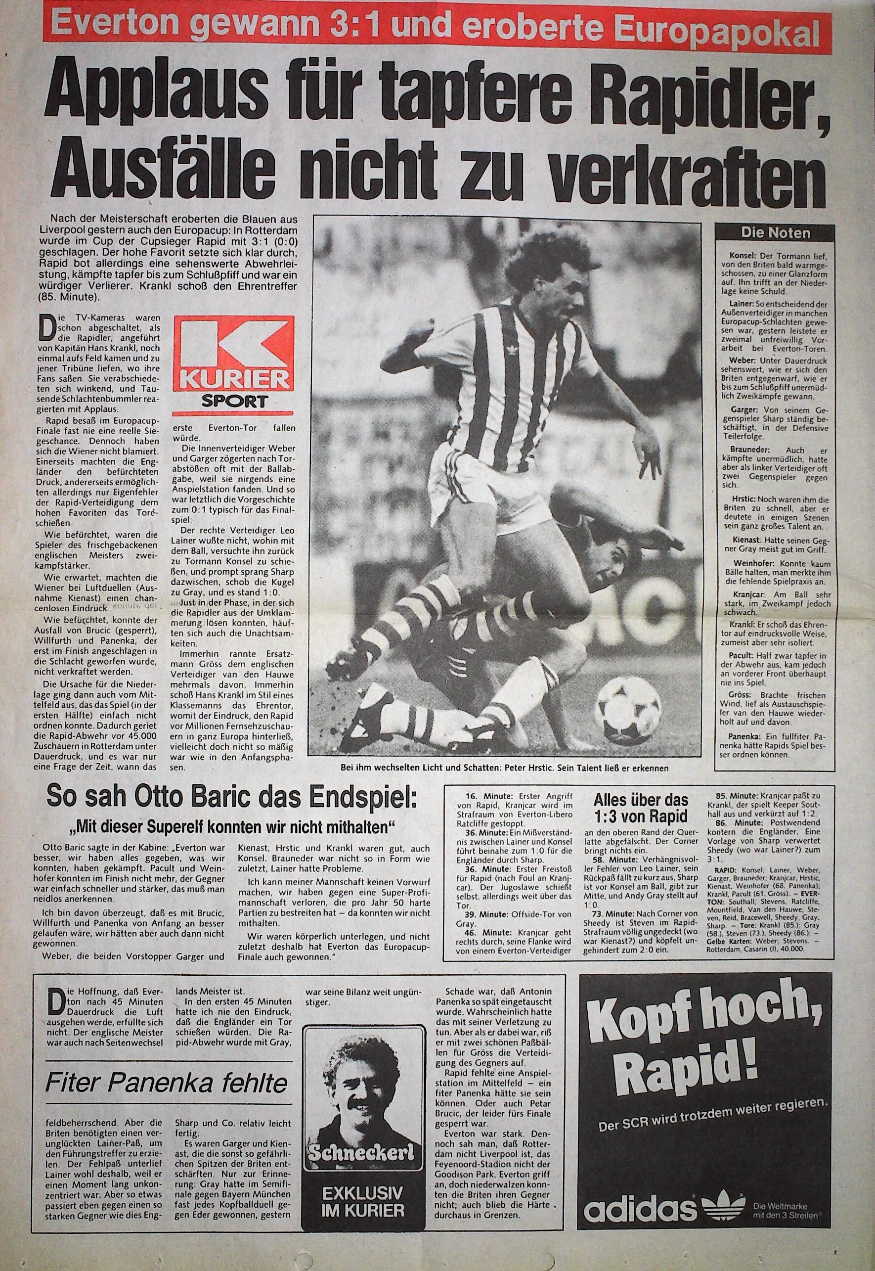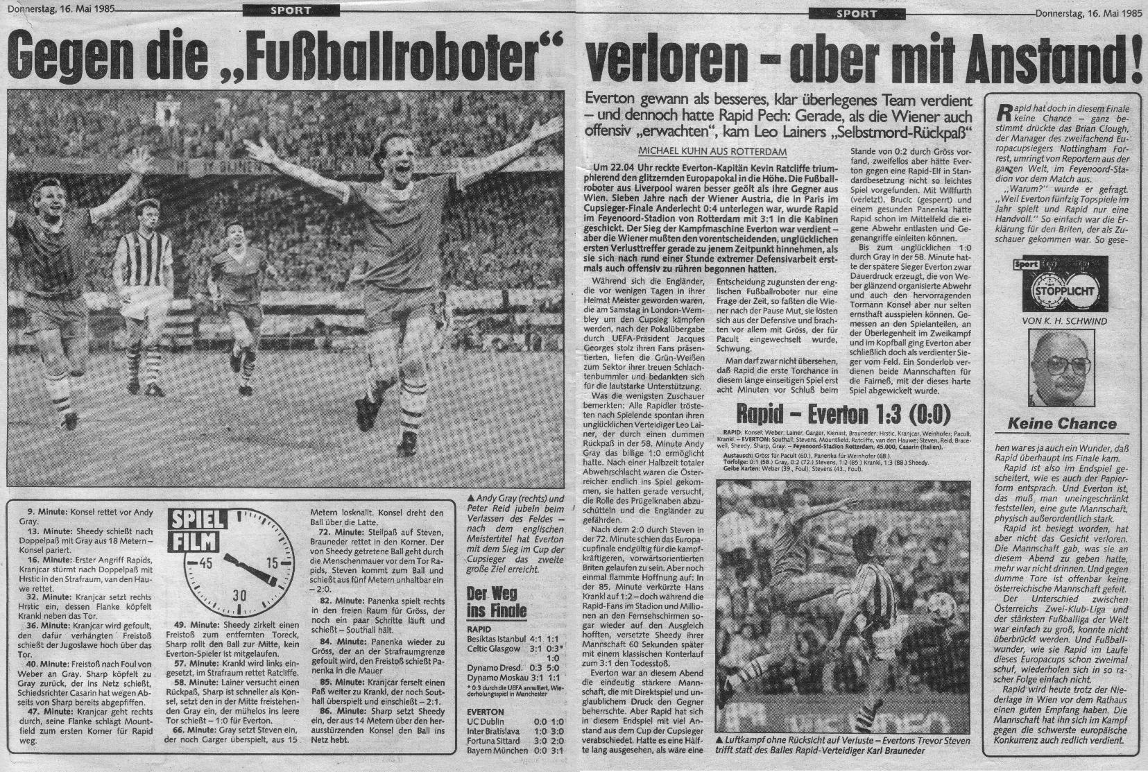 Everton FC – SK Rapid 3:1 (0:0), 15. 5. 1985Feyenoord-Stadion, 45.000, SR Casarin (Italien)