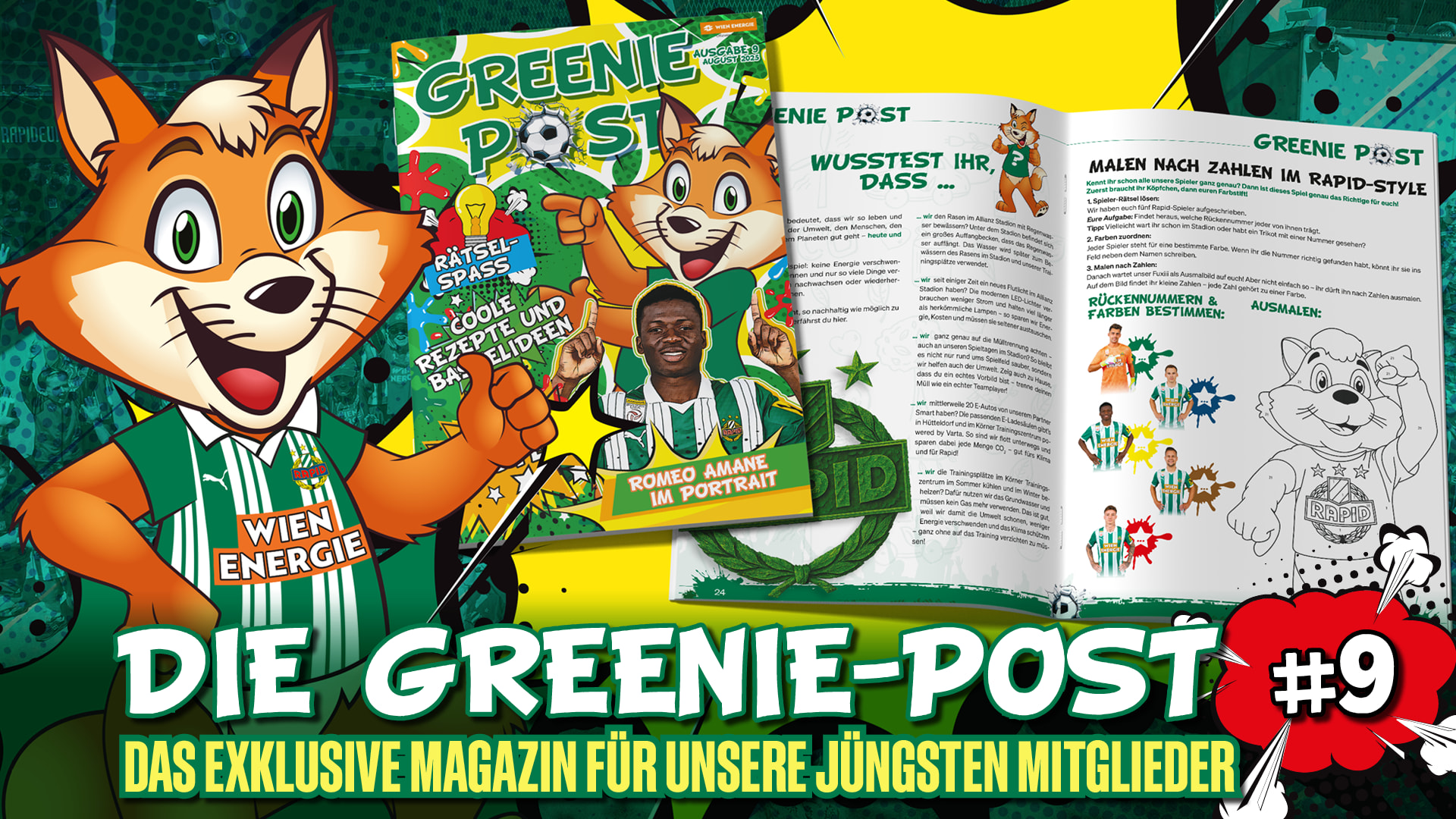 Zum bereits neunten Mal erscheint das exklusive Magazin für die jüngsten Mitglieder der Rapid-Familie, unsere Greenie-Post.