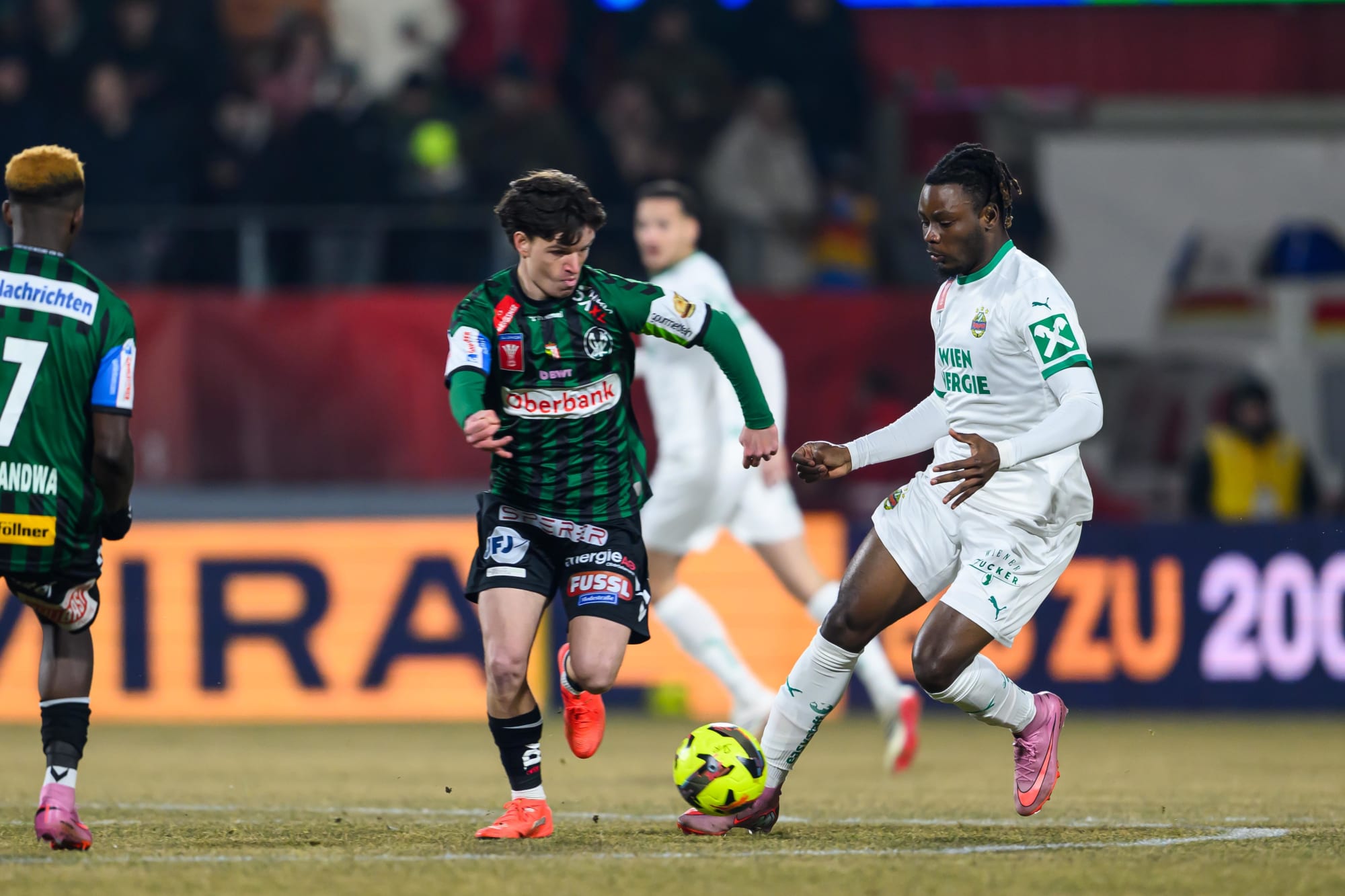 Rapid-11: Hedl; Weixelbraun (46. Ahoussou), Raux-Yao, Cvetković, Bolla; Gulliksen, Ndzie (85. Grgic), Amane; Seidl ©, Kara (61. Antiste), Tilio (46. Wurmbrand)