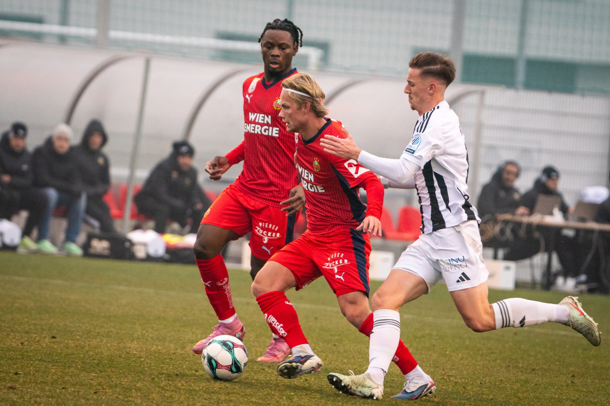 Teil 1 in Wien endete bei klirrender Kälte mit einem 1:0-Sieg der Auswahl von Coach Johannes Hoff Thorup gegen den First Vienna FC. Die mit einigen Rapid II-Spielern angetretene grün-weiße Auswahl sicherte sich den hochverdienten Sieg durch ein Goldtor des 18-jährigen Ensar Musić in der Rapidviertelstunde. Der nach knapp einer halben Stunde planmässig für Lukas Grgić in die Partie gekommene Eigenbauspieler traf bereits einmal vor Seitenwechsel die Stange und war damit ähnlich knapp dran am Führungstreffer wie Furkan Demir mit einem Versuch an die Unterkante der Querlatte.