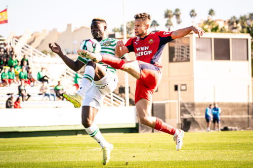 Am Samstag fliegt unsere Mannschaft dann aus dem klimatisch sehr angenehmem (untertags steigt das Thermometer auf rund 15 Grad und ist es bislang meist sonnig) Benidorm retour ins derzeit tiefwinterliche Wien. Dort wird am Sonntagnachmittag (14:30 Uhr) noch ein Testspiel „eingeschoben“, mit ETO Györ wartet ein alter Bekannter als Gegner, gegen den ungarischen Tabellenführer gelang Bendi Bolla & Co bekanntlich Ende August der Einzug in die Ligaphase der UEFA Conference League. Aus organisatorischen Gründen wird die Partie im Körner Trainingszentrum powered by VARTA ohne Zuschauerinnen und Zuschauer stattfinden, in Kooperation mit unserem Medienpartner Krone.TV ist ein Livestream aus dem Prater geplant.