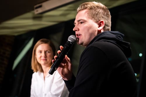 Neben unserem dänischen Coach, der in Begleitung seiner Co-Trainer vor Ort war und einen Einblick in seine ersten Wochen beim SK Rapid gab, war auch unsere Geschäftsführerin Wirtschaft, Daniela Bauer, erstmals beim traditionellen Stammtisch im Allianz Stadion zugegen. Sie beantwortete ebenso zahlreiche Fragen wie die beiden Spieler der Profimannschaft Jannes Horn und Tobias Børkeeiet sowie Jasmin König von den SK Rapid Frauen.