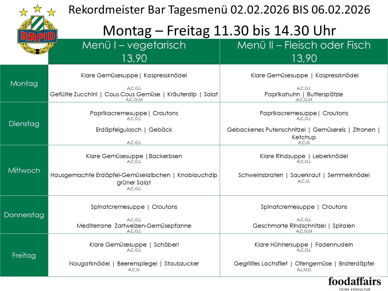 Menüplan Rekordmeister Bar vom 02. bis 06. Februar 2026