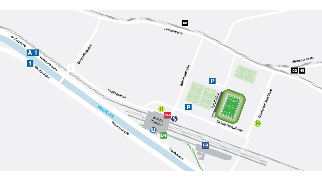 Mit der S-Bahn kommt man ebenso wie mit diversen Regionalzügen der ÖBB und der WESTbahn zum Bahnhof Hütteldorf, auch diverse Busse machen dort Station!