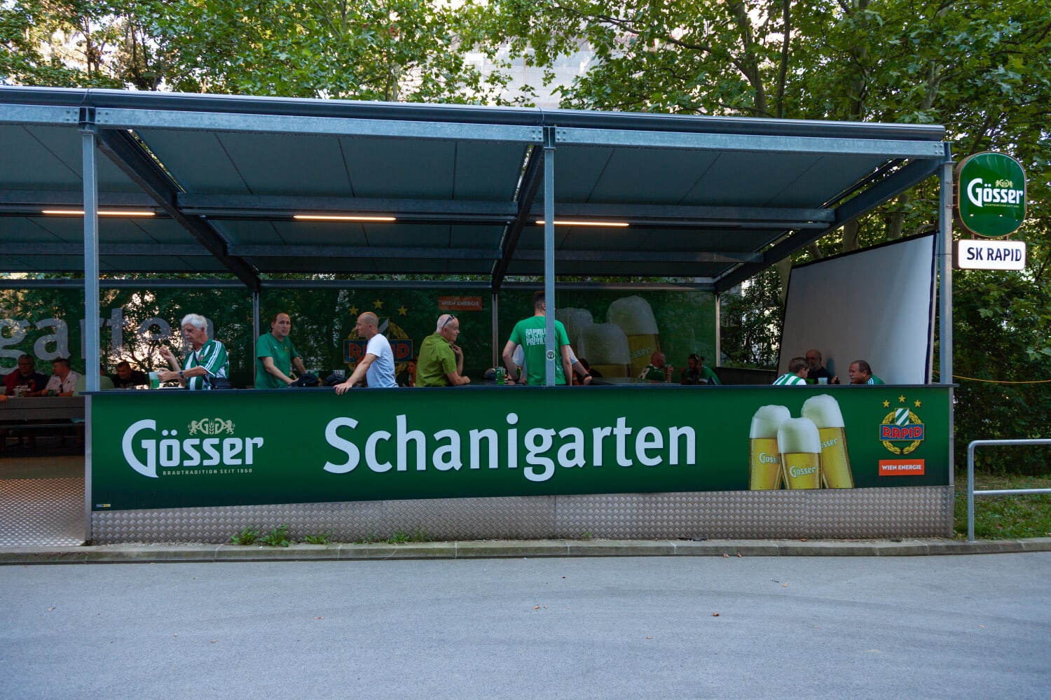 Hinter der Allianz Tribüne gibt es die Möglichkeit, sich im gemütlichen Gösser Schanigarten auf das Spiel einzustimmen!
