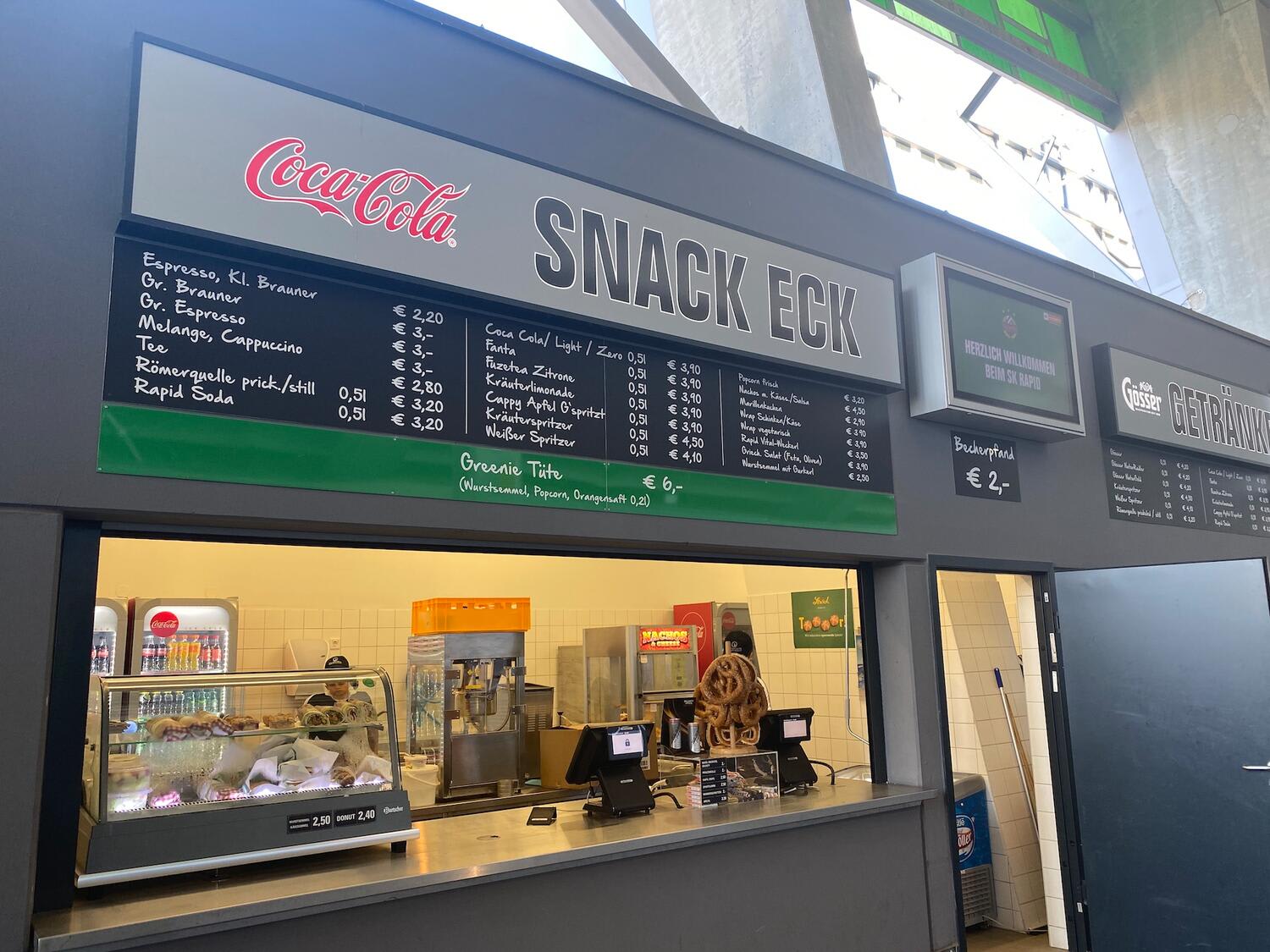 Auf dem Nordtribüne gebt es beim Snackkiosk