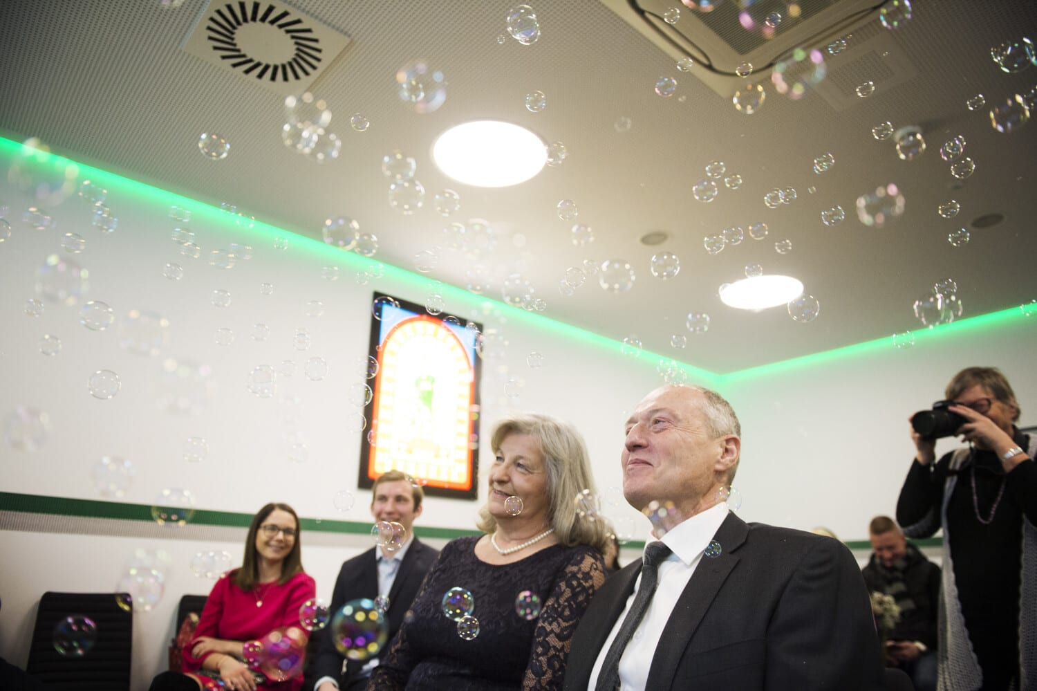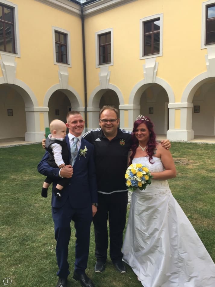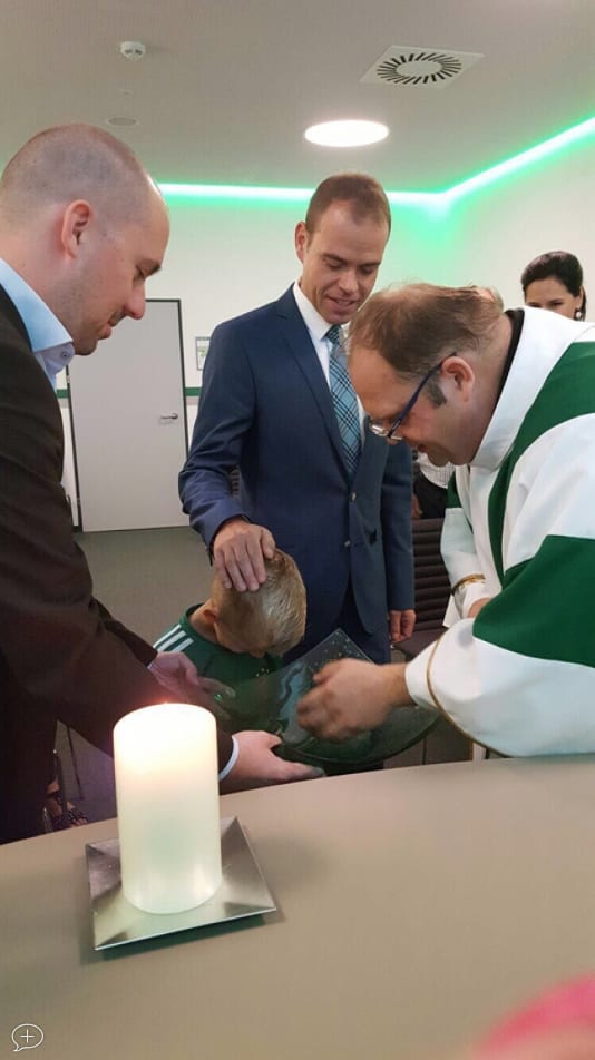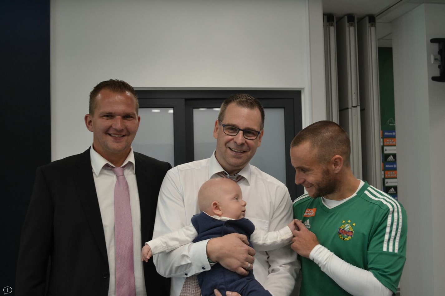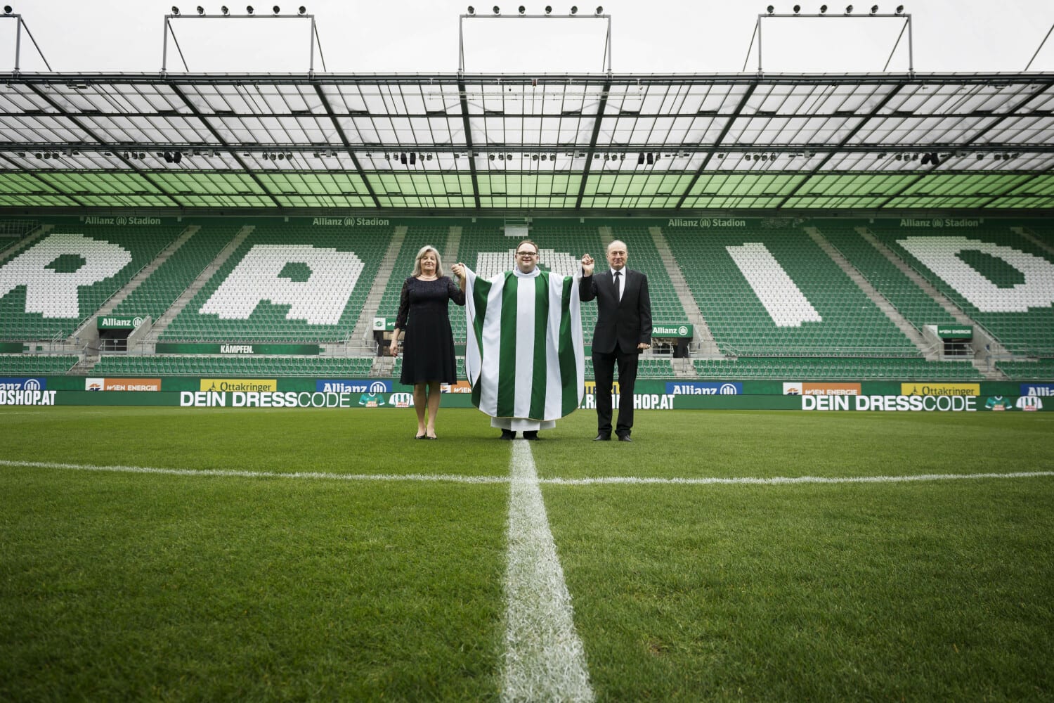 Mag. Christoph Pelczar, der als "Rapid-Pfarrer" schon zahlreichen grün-weißen Eheschließungen beiwohnte, unterstrich die soziale Funktion des Fußballs: "Dieser Sport kann Lehrmeister für die im Leben wichtige Balance von Einheit und Gemeinschaft sein. Es ist ein wunderbarer Tag, ein Traum vieler Rapid-Fans geht hier in Erfüllung."