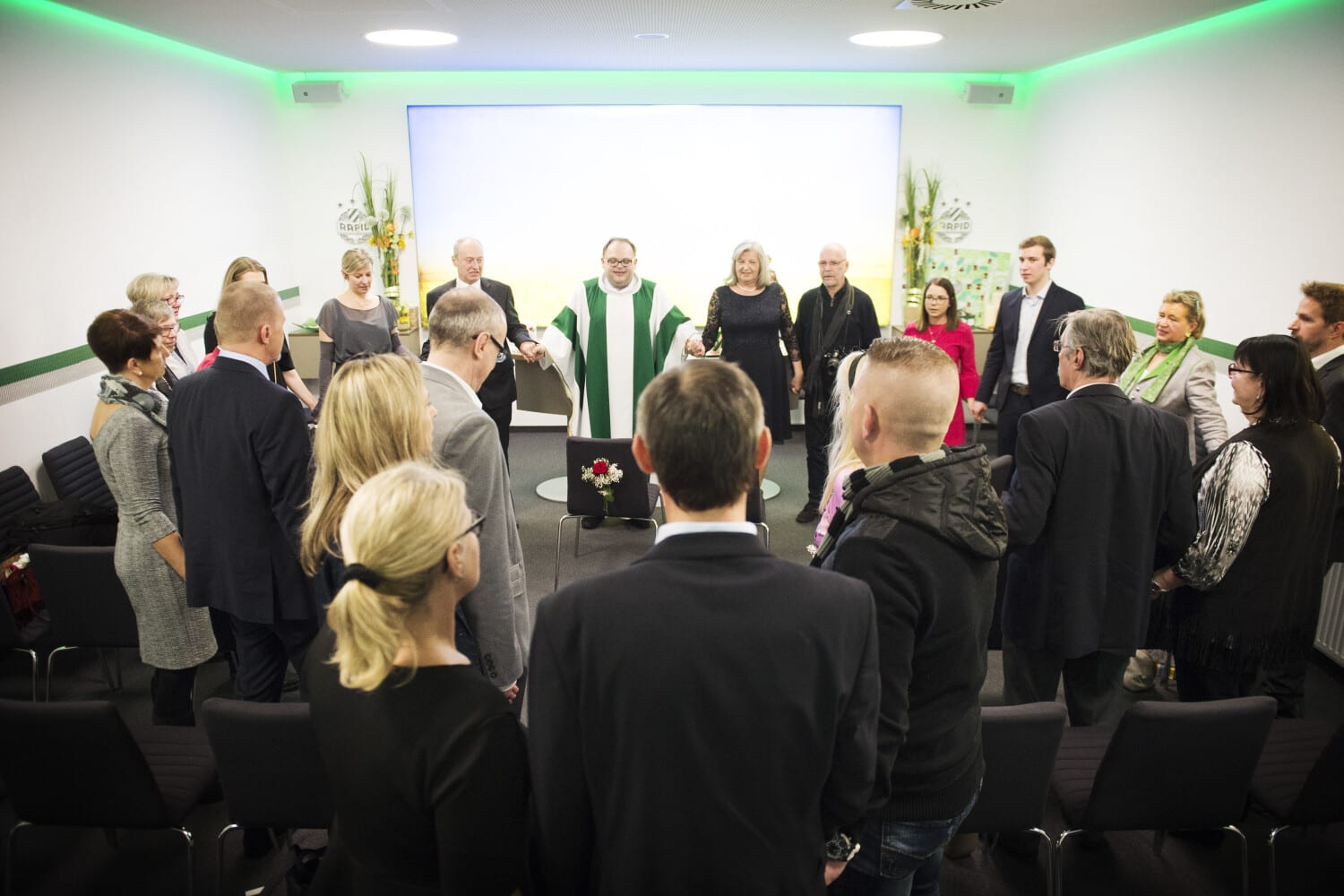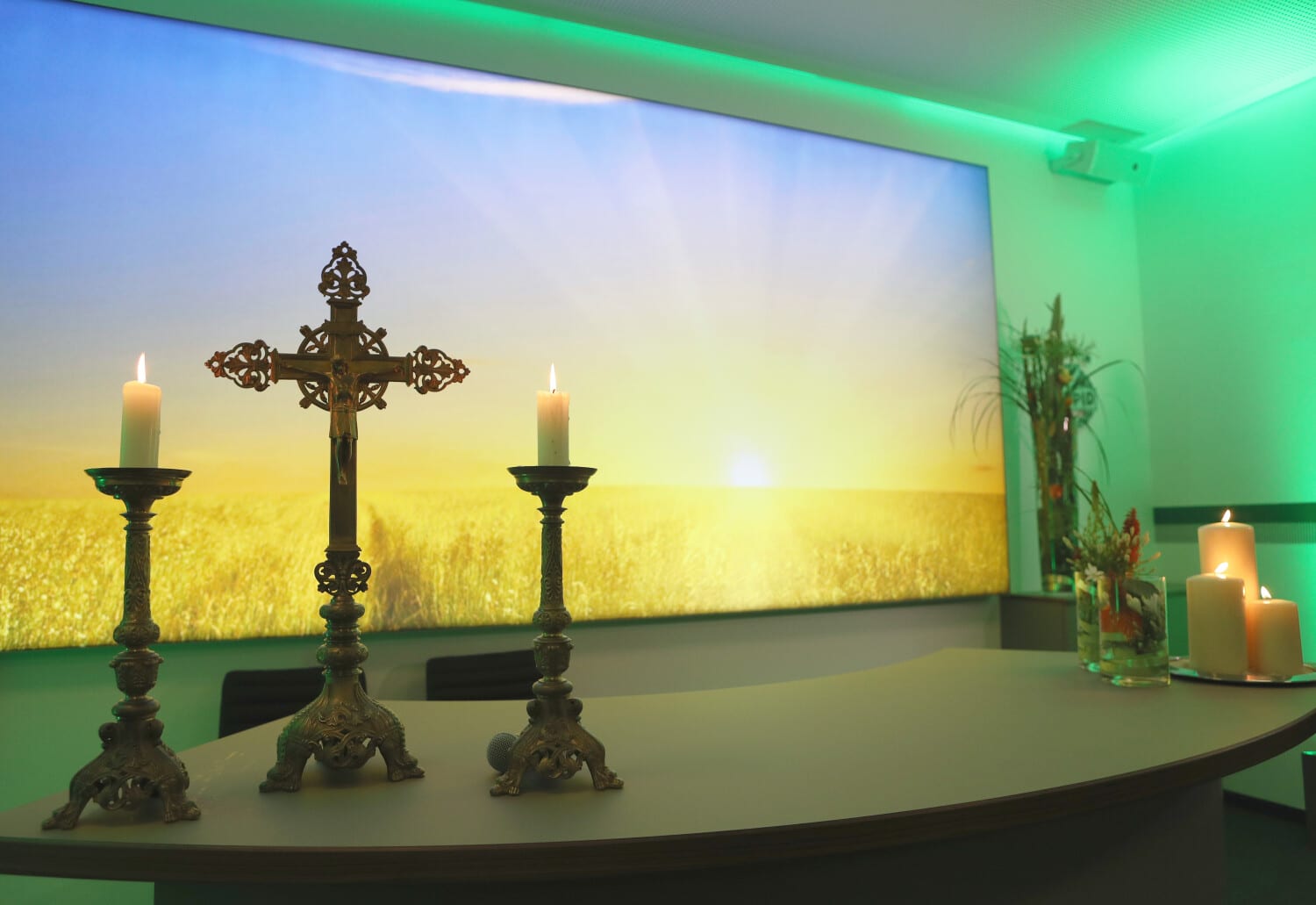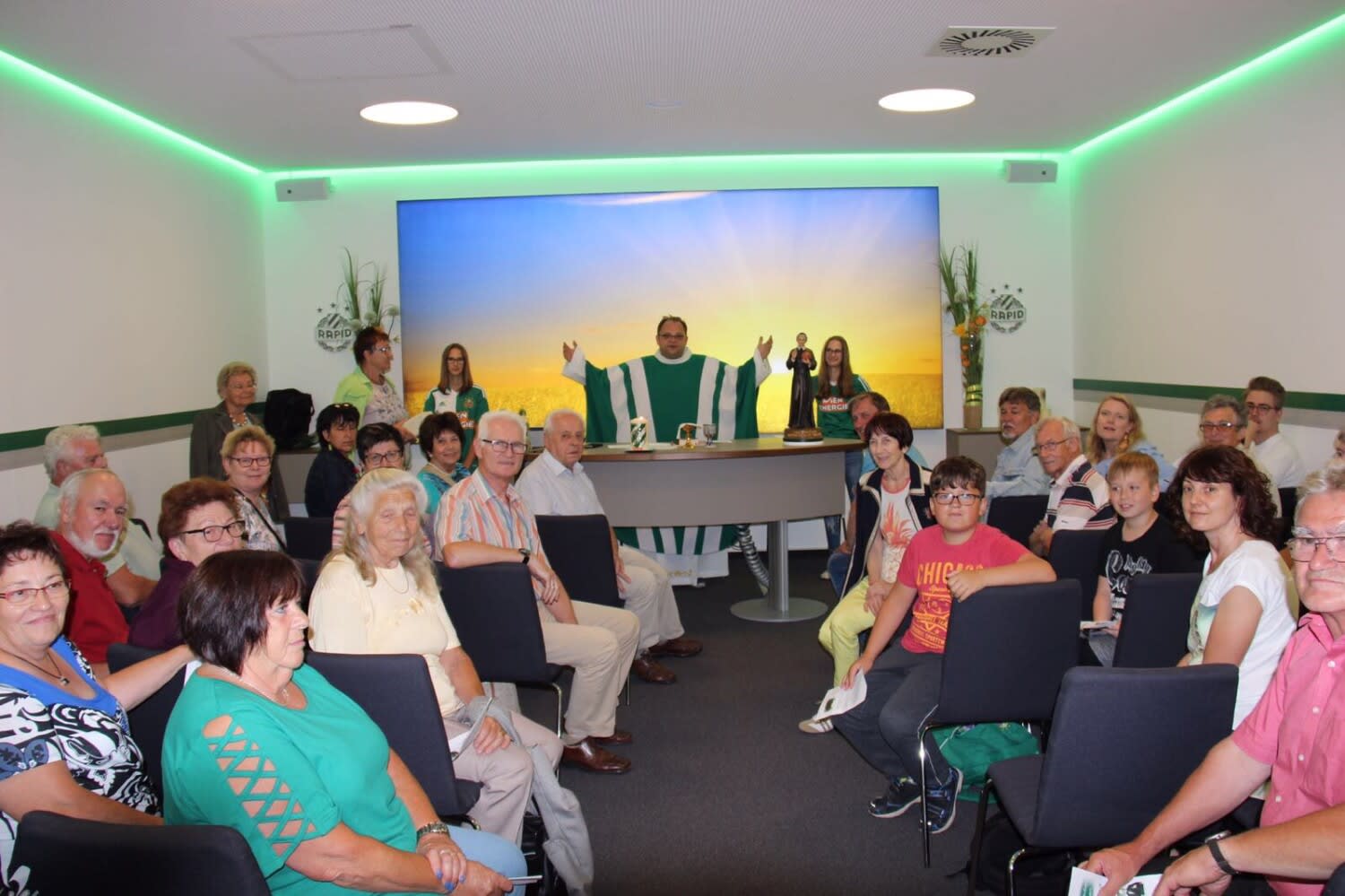 Im Juli 2016 eröffneten wir - nach dem Fanshop, Fancorner und dem Rapideum - den grün-weißen Andachtsraum. Dieser befindet sich im Stadioninneren in der Haupttribüne und ist öffentlich nicht frei zugänglich. Vielmehr aber zu reservieren: Hier können Rapid-Fans jeder Konfession den Bund des Lebens schließen und heiraten, ihre Kinder taufen lassen, Abschiede feiern, oder Teambuildings und Friedensgottesdienste durchführen.