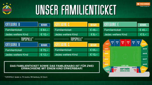 FAMILIEN-ABO: Das Familien-Abo ist die passende Möglichkeit für alle grün-weißen Familien, die regelmäßig bei den Heimspielen im Allianz Stadion mit dabei sind.