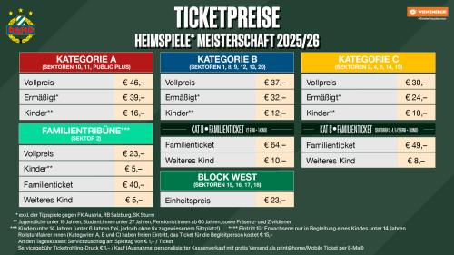 Aufgrund der für uns als Veranstalter in sämtlichen Bereichen über die ohnehin hohe Inflation hinausgehenden steigenden Kosten sind wir gezwungen, für kommende Saison eine Indexanpassung in der Höhe von durchschnittlich drei Prozent vorzunehmen. Dadurch wird das Abo im Vergleich zur aktuellen Saison über alle Kategorien hinweg um maximal rund 90 Cent/je Spiel teurer. Im Vergleich zu den Tageskartenpreisen rentiert sich die Dauerkarte aber weiterhin schon ab dem 11. von 16 Heimspielen unserer Mannschaft.