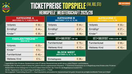 Nachfolgend findet ihr im Vergleich zu den Abopreisen auch bereits die Tageskartenpreise für die kommende Saison: