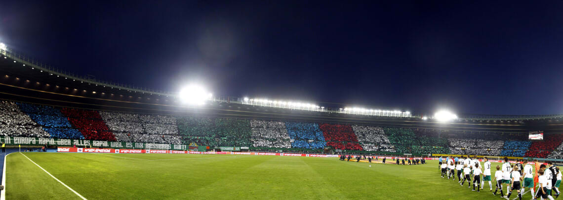 Im Praterstadion, das bekanntlich 1992 nach dem großen Rapid-Spieler Ernst Happel benannt wurde, feierte der SK Rapid in den letzten 82 Jahren einige bemerkenswerte Triumphe, musste aber auch bittere Niederlagen hinnehmen. Viele Spiele der Grün-Weißen, die ursprünglich im 15. Bezirk zu Hause waren, seit mehr als 100 Jahren aber tief verwurzelt in Hütteldorf – zuerst auf der legendären Pfarrwiese und seit 1977 im nur einen Steinwurf entfernten Weststadion, das seit Anfang der 1980er-Jahre zu Ehren des Architekten und frühren Spielers Gerhard-Hanappi-Stadion heißt – sind, gingen in die Geschichte ein.